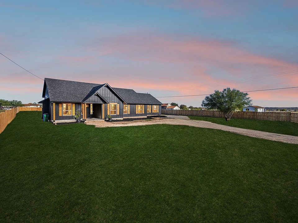 Beautifully crafted modern farmhouseFully fenced perimeterSplit floor planAbundant natural lightStainless steel appliancesGranite countertopsLarge picture windows