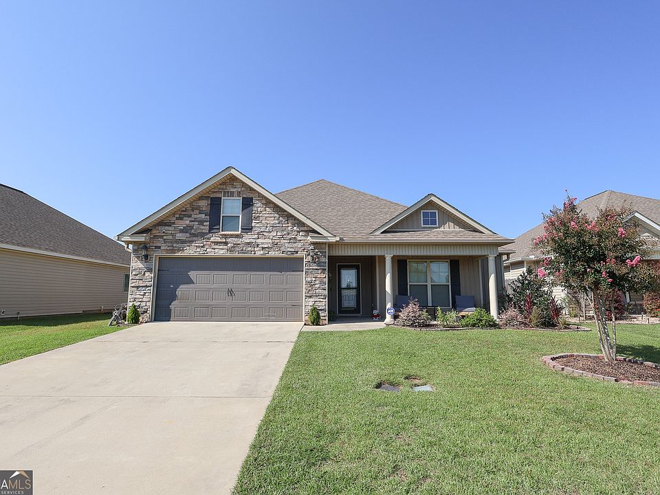 Nestled in Bonaire, this inviting 3 bedroom, 2 bath home is full of charm and thoughtful details! Featuring an open-concept living area and kitchen, this home is designed for both comfort and function. The kitchen offers a convenient breakfast bar and eat-in dining space, while the cozy fireplace adds warmth to the living room. The split bedroom plan provides privacy for the primary suite, while two additional bedrooms share a full bath. Step outside to enjoy the screened-in back porch overlooking a large, fenced-in backyard-perfect for relaxing or entertaining. This home combines space, style, and location, making it a must-see!