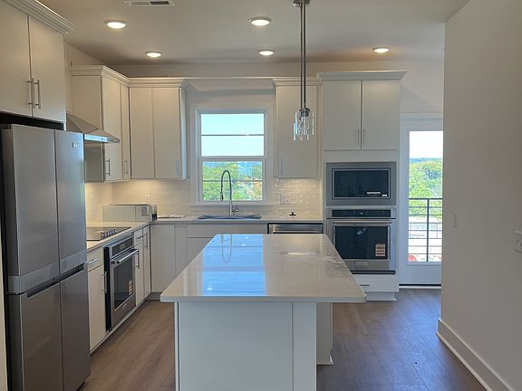 Perched above the city with sweeping views of the Nashville skyline, these 2-bedroom 2/2 bath townhomes with loft each feature private rooftop decks perfect for enjoying your morning coffee. Inside this home, you’ll find an open-concept layout with stylish, upgraded finishes throughout. The kitchen showcases a large quartz island with striking white cabinetry, pantry, exposed hood and premium stainless steel appliances including a double oven. This home comes with refrigerator and washer/dryer! Luxe finishes continue into your primary suite, including a spacious walk-in closet and spa-inspired tiled shower with bench. Our Terravista Grande plan includes a loft space separated on it's own floor- perfect for the ultimate entertainment area or home office with added powder room, quartz-topped beverage center and double sided roof top access. Skyline offers unmatched convenience to downtown and is surrounded by exciting new growth such as the Riverside, River North and Neuhoff developments- minutes to the best dining, shopping, and nightlife Nashville has to offer, yet tucked into a private side-walked community. Renowned builder John Wieland offers one of the most comprehensive warranty's including 5-year water intrusion coverage. Ask about our in-house lender incentive!