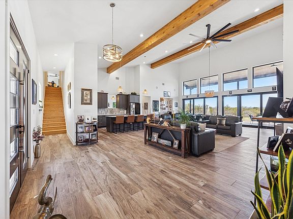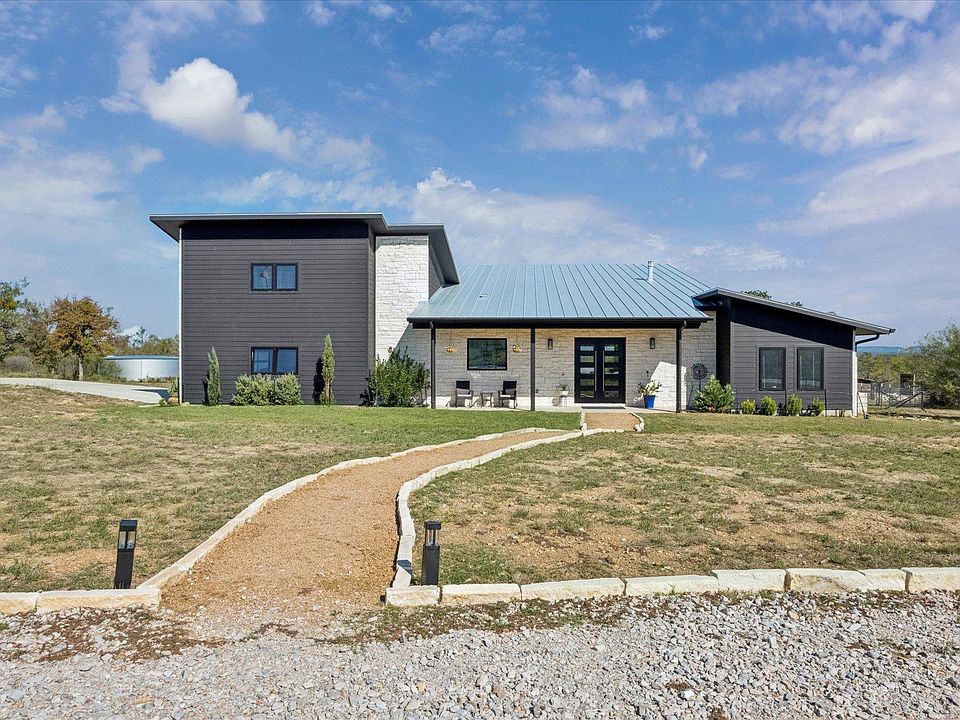 Escape the crowded city for a peaceful room to roam, gaze at the starry night skies & panoramic hill country views by day paradise. Only 10 minutes to Marble Falls, 25 min to Bee Cave and less than an hour to Austin. Enjoy living on 5 AG Exempt acres with endless possibilities. Entertain like a boss in this expansive indoor/outdoor living hill country modern home. Built to take in the stunning views and inspiring sunsets and sunrises. The great room boast a 25 ft beamed ceilings and a wall of windows w/ large sliding glass doors that open to indoor/outdoor flow for any occasion. Create a culinary masterpiece in this spacious kitchen with double gas oven range and plenty of countertop space & storage including a nice size utility room just behind the kitchen. The primary suite is simple and inviting with neutral colors, a beautiful custom closet and beach entry walk in shower, natural light & private outdoor access. Relax in the swim spa just off the primary bedroom deck or the massive Trex deck below that is sure to please any activity. Enjoy some smores by the fire and take in the views. Store away all your extras in the 20x 30 metal building w/ a 30 ft. covered lean-to for your RV, boat or trailer w/ 50 amp electrical hookup. Additional 50 amp hookup on property for guests. No water bill, the 29,000 gallon rainwater collection tank supplies plenty of water. Must see! Owner/agent.