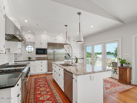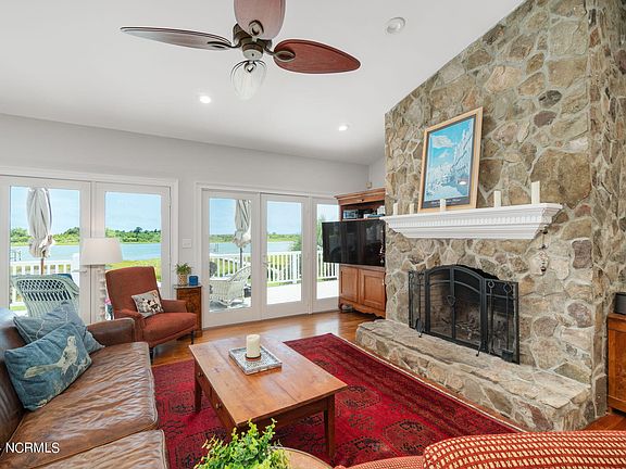 Nestled amongst almost 2 acres on the ICW, this inviting home offers a seamless blend of coastal charm and modern comfort. Two lots have been combined for ultimate privacy which include an in-ground pool and a firepit area for year-round outdoor entertaining. Boating is a breeze with your own deep water dock and 3 boat lifts across from Bear Island! Inside brings expansive windows so you can enjoy the water view and the open concept living, dining and kitchen space makes entertaining a joy and the well-equipped kitchen is any chef's dream. The primary suite has direct access to the outdoor deck, promising a peaceful retreat. Two additional bedrooms on the main floor leaves plenty of room for friends and family to stay. On those cool winter days, enjoy one of the two fireplaces in the home. The main living area is comprised of 1859 square feet (see sketch under documents) and the ground level which is semi-conditioned offers 1298 square feet and a finished guest area of 387 square feet for a total of 3,544 square feet! For MLS purposes, the whole ground level has been entered as a separate space which features a large recreation room, additional space for an office, full hallway bath, and a tackle room and separate workshop. Live your coastal dreams at 108 Seagull way today.