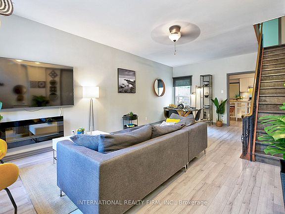 A standout opportunity for first-time buyers, families, or investors. Bright and move-in ready, this 3-bed home offers high ceilings, modern laminate floors, and an open main level with a generous living and dining area. The eat-in kitchen features ample storage, newer appliances, and a rear mudroom with convenient main-floor laundry.Upstairs includes a spacious primary bedroom, second bedroom, and a third ideal for a nursery or home office. The lower level offers a cozy rec room and second full bath.Key updates: renovated kitchen (2016), waterproofed basement + sump pump (2016), furnace & A/C (2016), new flooring (2019), and pot lights throughout. A second-floor wall A/C adds summer comfort.Enjoy a large private deck with a rare CN Tower view. Permit parking available on Shaw.Steps to Queen West, Ossington, Trinity Bellwoods, cafés, shops, and schools.