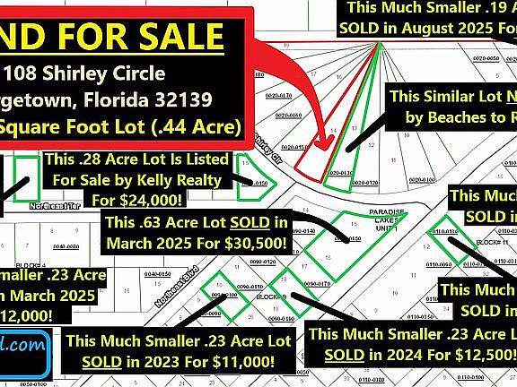 The Lot's Address is 108 Shirley Circle, Georgetown, Florida 32139 in Putnam County.