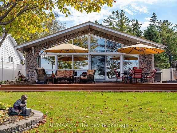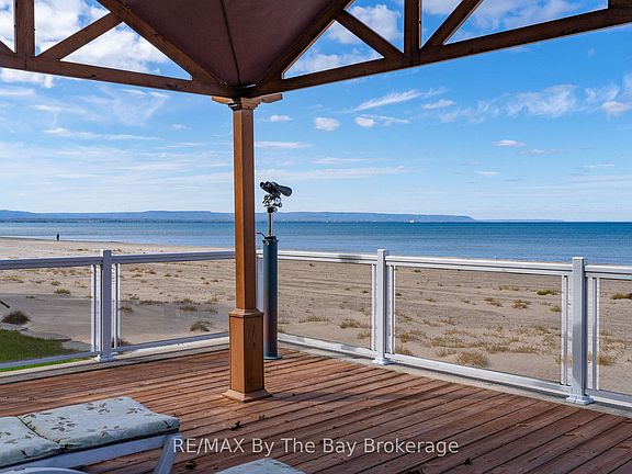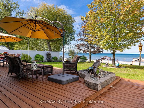 BEACHFRONT - 4 Season Cottage on Shore Lane!! Stunning Sunset Views with 14 km of sandy beach at your doorstep. Rarely Available! Open Concept Living Room/Kitchen, LG Stainless Steel Appliances (2023), Washer/Dryer (2024), Gas Fireplace, 3 Bedrooms, Plus 3 more separate sleeping rooms for large family or guests. Double Car Extra Long Heated/Air Conditioned Garage, Security System, Sprinkler System, Central Air, Central Vac., 1000 S.F. Beachside Deck.