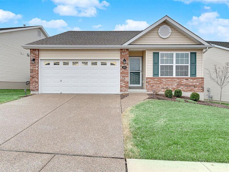 DETACHED VILLA in impeccable condition only 5 years young and a few doors down from the community pool amenities at the Golf Club of Wentzville! This charming ranch villa boasts an open floor plan with vaulted ceilings, a main floor laundry room, a kitchen with granite countertops, center island breakfast bar, SS appliances, custom soft-close maple cabinetry with crown molding, a dining area and great room with gas fireplace. Oversize 24x12 patio has privacy screening and professional landscaping for privacy. The primary bedroom has a walk-in closet and full bathroom with oversize shower with seat. Bedroom two is currently a home office, and the lower level is finished with a nice family room with electric fireplace (possible third bedroom with egress window) a half bath, a huge workshop room, and plenty of storage area remaining for all of your goodies. Condo fee includes some insurance, landscaping and maintenance, snow removal, lawn sprinklers and a subdivision pool! Location: Detached, End Unit, Ground Level