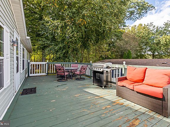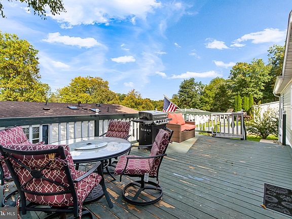 Well maintained 3 Bedroom, 2 Bath home available in Nottingham Manor. Enjoy the large attached decks for entertaining and outdoor activities. There is plenty of room on either deck for tables, chairs, grills, and outdoor furniture. The rear deck faces the rear of the quiet large lot that backs up to a private wooded view. Kitchen with island and gas cooking has open view to the living room which includes a fireplace with a propane insert. Primary bedroom has En Suite bath and two separate closets for separate storage needs. The main bath also has a skylight which was replaced when the new roof was installed. New roof on home and shed was installed in March 2022. Central AC was previously upgraded to R 410A freon. Refrigerator, Washer, Dryer, and countertop Microwave all included.