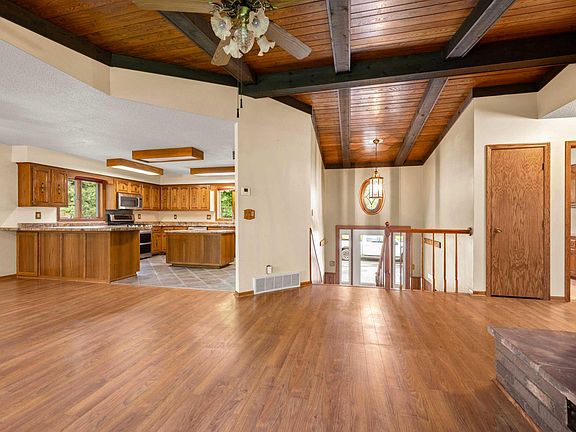 Tucked away on a private lot overlooking the Bigfork River, this 3 bed, 2 bath split-level home offers a great blend of comfort, functionality, and charm. The main level features a massive kitchen perfect for entertaining, a stunning decorative fireplace, and a spacious primary bedroom complete with a gigantic walk-in closet. Downstairs, you’ll find two additional bedrooms, a cozy family room that shares the same eye-catching fireplace, abundant storage, and a jacuzzi tub that comfortably fits three. Outside, the property continues to impress with a tar driveway, beautiful landscaping, and a flat, usable yard. A detached 2+ car garage provides ample parking, while a second garage features a woodworking shop and is fully heated and insulated. Privacy, practicality, and peaceful river views—it’s all here in Bigfork.
