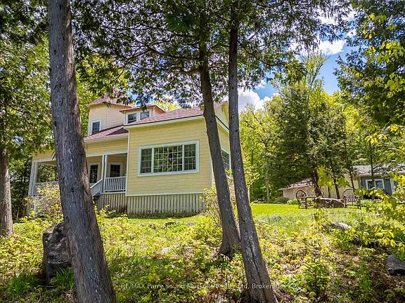 Upon arriving at Waldheim imagine meandering along your private lane amidst an enchanting forest, dappled with ferns and outcrops of Canadian granite. Embrace an invitation to breathe as you make your way towards the idyllic, fully restored home built circa 1905. Surrounded by 16 acres of prime land with an impressive waterfront, this property offers tranquility and seclusion. Step inside this 4 season, 3 bedroom Lake House, featuring a lovely kitchen/dining area with a gentle transition into the Muskoka room with pristine lake views. High ceilings with thoughtfully placed windows take advantage of the picturesque surroundings. Nestled amongst the great hemlocks of Waldheim on Lake Cecebe, this historical beauty awaits another generation of guardians. Lovingly restored with meticulous authenticity, this gem embodies tradition with modern amenities in all of the 3 primary structures, while maintaining its historical elegance and unique characteristics. This private point boasts a rare 1290ft of perfectly elevated shoreline. Follow a winding garden path to the lakeside guest house offering views across Professors Bay. The lakeside guest cottage is restored with the same care and attention to historical detail, intertwined with a careful blending of the luxury of modern comforts. The spacious living room with its cozy wood stove, main floor washroom and loft bedroom offers a peaceful haven for guests. French doors open to a deck leading to the main dock providing plenty of space to gather. The boat port will accommodate a vessel up to 24ft. Nurture your creativity within the studio built with impeccable craftsmanship, complemented by the warmth of a wood stove. The restored carriage house provides parking for 3 vehicles and is conveniently located close to the main house.Opportunities like this, where heritage meets comfort in total privacy, are truly rare. "My wish is to stay always like this, living quietly in a corner of nature." - Claude Monet