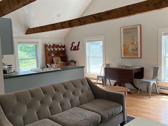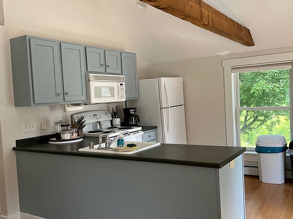 This two bedroom one bath apartment is located between Kennebunk and Kennebunkport, Maine. Open concept kitchen/ living room area with vaulted ceilings. Located on the 2nd floor of the Waldo Emerson Inn's carriage house, enjoy the well manicured grounds of the inn. Includes washer/dryer in unit. One queen bed in each of the two bedrooms. Kitchen/Living room is hard wood flooring, each bedroom is carpeted. Full kitchen to include oven, microwave, refrigerator, dishwasher. Utilities included. No pets please.
