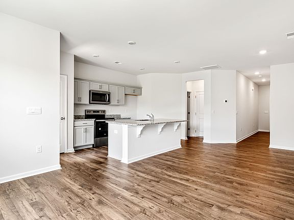 Check out 108 Sunriff Court, a beautifully designed townhome in featuring three bedrooms, two and a half bathrooms, and a one-car garage. The open-concept layout is perfect for entertaining, ensuring you’re always part of the action. Upon entering, you'll be welcomed by a spacious foyer that leads into the living and dining areas. The open concept kitchen provides ample storage and features a glass door that seamlessly connects the indoors with the patio, enhancing your living experience. A conveniently located half bathroom is situated off the living room. Moving upstairs, you’ll find two bedrooms, which share a bathroom. The upstairs laundry room is also ideally located for easy access. On the opposite side of the floor, the primary bedroom features privacy and comfort. The en-suite primary bathroom boasts a double vanity and a walk-in shower with glass panels. The spacious walk-in closet is perfect for additional storage. The primary bedroom features a large window, filling the room with extra light. With its smart design, natural lighting, spacious layout, and modern finishes, this townhome is a wonderful place to call home. Pictures are representative.