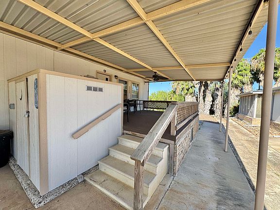Nestled within a quiet, secure gated community, this charming fully furnished home offers the perfect blend of comfort and relaxation. Enjoy your mornings in the sunroom or on the patio, where you'll be greeted with the serene view of beautiful swaying palm trees. This home is especially well-suited for retired couples looking to downsize without sacrificing comfort or quality. Spacious layout with 3 bedrooms/2 baths, everything in great condition. 2 storage rooms and large carport! Call today!