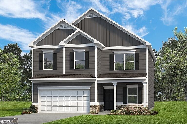 Move in ready October 2025! The Harrington in Sycamore Crest by Smith Douglas Homes. The Harrington is one of our most popular plans! The main floor impresses with an open concept family room with upgraded vinyl plank flooring throughout, a large breakfast nook and center island kitchen. Kitchen has 42" upper cabinets, granite counters, a tile backsplash, and stainless appliances. A covered patio can be accessed from the breakfast nook. A study off the foyer is ideal for a home office. The incredibly spacious Owner's suite features a tray ceiling, bath with double sinks and a large shower all this is privately tucked away on the same level as three additional bedrooms. This impressive suite is large enough for a sitting area! Second floor shared bath has double sinks and the laundry room is conveniently located on this level. The 9ft ceiling height adds to the spaciousness of the home! Photos are representative of plan not of actual home being built. Seller incentive with use of preferred lender.