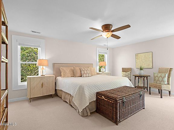 Nestled beneath a canopy of live oaks, 108 Talford Drive is an interior designer's home that offers a rare blend of coastal elegance, timeless comfort, and privacy in the heart of Atlantic Beach. Beautifully curated interiors and natural light filtering through the trees create a space that feels as inviting as it is sophisticated. A welcoming foyer sets the tone for the home's elevated style. A flex room with twin beds and a bedroom with a walk-in closet offer options for guests, sharing a hall bath with a double vanity and shower/tub combo.