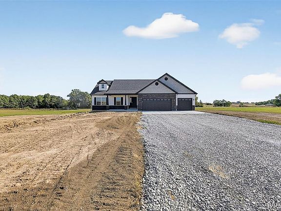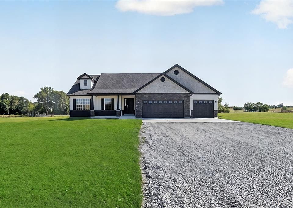 MOVE IN READY! Sitting on 2.5 acres just 10 Minutes from Troy and 20 Minutes to Wentzville-Quiet County Living in a small Community with just 4 Lots! The "Breckenridge A" Model is 1654 sqft 3 Bedroom/ 2 Bath Open Concept Floor plan. Enter the Front door into Foyer leading to the Great Room W/ Vaulted Ceilings, Oversized Open Kitchen W/Large Eat-in Island, 42 Inch White Shaker cabinets W/ Granite Counter Tops. In the Kitchen you will find Stainless Steel Appliances, full Pantry and Recessed Lighting. Laundry Room is conveniently located on the Main Floor. The Master on-suite with Walk-in Closet, Ceiling Fan, attached Bath with Double Sink Vanity, Soaker Tub & Step-in shower in Master Bath. Other Interior Upgrades include 2 Panel Doors, Tilt in Windows, Brushed Nickel Door Hardware, Light Fixtures & Plumbing Fixtures. Iron Spindle Banister Leading to the Full Basement with an Egress, & full roughed in Bath for Future Finish. The Craftsman Style Exterior features Black and White with Stone and Vertical Siding Upgraded. The Oversized 3 car Garage is extra Deep with a Man Door walking out to side yard. Schedule your Private Showing today!