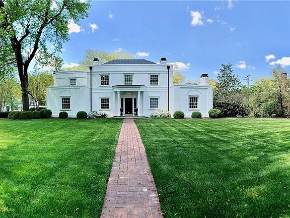 This 2-owner was completely Restored by Mark Franko with the finest materials and finishes * All Wood or Tile Floors * Rooms of dramatic proportions * Curved walls & fluted columns * Floating circular staircase with wrought-iron balustrade graces the large central foyer. *Lighted, coped-joints ceiling * Gas Fireplaces * French doors & views of side and rear patios * Mid-20th-century bomb shelter is now family room w/Mahogany Cabinetry * Recessed lighting * Speakers & French doors * Cozy library leads to newer kitchen w/Monogram appliances * Marble countertops * Subway backsplash * Island w/Walnut top * Hexagonal morning room w/2 corner built-in niches * Central Banquet-sized dining room overlooking flagstone terraces and gardens * Double-barrel Pergolas & large fountain * Upstairs includes Master w/spa-like bath * 3 bedrooms & 2 full baths * Walkout Basement has 5th bedroom w/ Ensuite bath * TV Room * Bonus Room with gas FP * Custom Walnut Cabinetry & Wine Rack * Wine Chiller * B -Dry System * Acqua Therm Energy Efficient Heating * Detached 2 car garage * Stone Paver driveway * Solid Construction with Brick and Concrete * Metal and Rubberized Roofs Replaced* Windsor Farms Living