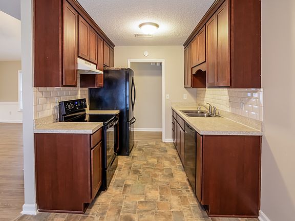 Fenced yardAttached garageBrick facadeBrick accent wallPatio areaQuiet cul-de-sacSleek black appliances