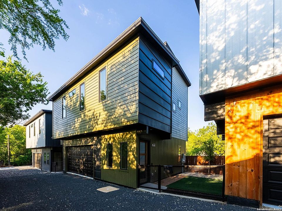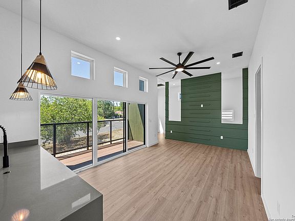Modern living in the heart of downtown San Antonio! Welcome to Unit 102 - a thoughtfully designed 2-bedroom, 2-bath home with an office and a spacious utility room, maximizing its 1,681 square feet (including garage). The main living spaces are located on the second floor, offering elevated views, abundant natural light, and striking vaulted ceilings. The sleek kitchen boasts quartz countertops, custom cabinetry, a full decorative backsplash, stainless steel appliances, a pot filler, and a vent hood - perfect for both everyday use and entertaining. Enjoy seamless indoor-outdoor living with a metal-railed balcony accessed through oversized sliding doors. Stylish finishes throughout include modern lighting, accent walls in key rooms, and carefully curated bath designs. A low-maintenance xeriscape yard and a modern metal privacy fence elevate the outdoor appeal. The attached 2-car garage provides ample storage. A rare opportunity for sophisticated downtown living!
