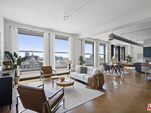 *PRICED TO SELL* Large, open, and sundrenched NY Style industrial Loft home at the historic Higgins Building. This trophy South East CORNER unit has 1200 SQFT of living space, 7 oversized industrial zinc plated windows, 11' ceilings, & polished concrete floors. Spectacular wall windows with eastern exposure overlooking the historic Saint Vibiana Cathedral and event center. The owners have meticulously updated this home with refinished kitchen cabinetry, gourmet quartz counter tops + backsplash, sleek LG electric cooktop/oven, wine refrigerator, deep oversized farm sink, Bosch dishwasher, integrated water filtration system w/ smart digital dispenser, Nest thermostat, custom draperies in unit washer/dryer, & custom accent light fixtures. Rooftop BBQ & dining area offer stunning skyline views. Steps from LAPD dog park, Little Tokyo, Grand Park, Grand Central Market, Blue Bottle Coffee, Redbird, Badmash, fine dining, entertainment, museums, concert halls, & public transportation. A piece of living history, the Higgins building exemplifies the burgeoning community of art, culture, and entertainment in downtown. *BONUS* The Higgins Lofts is a registered federal historic landmark with Mills Act Tax exemption status saving owners roughly 75% off of property taxes. Water, Trash, Sewage, & General Liability/Fire Insurance included with HOA Dues. Residents pay their own electricity + TV/Internet. Optional Parking available adjacent to building for $175/month.