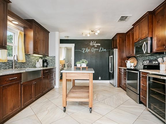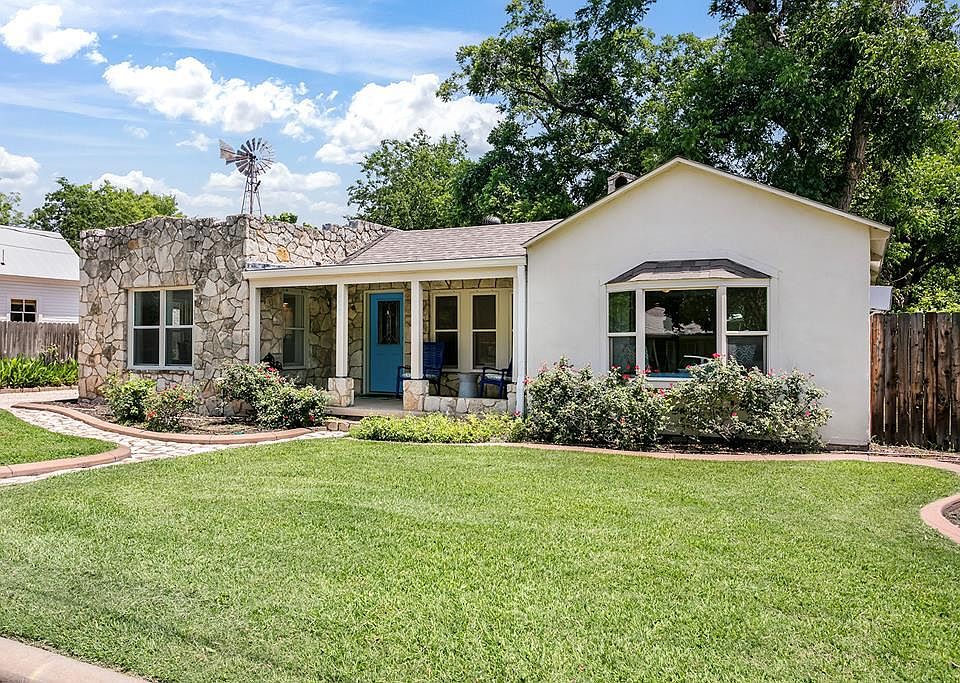 Award-Winning STR just 4 Blocks from Marktplatz!  Welcome to The Aqua Door an income producing short-term rental located in the heart of Fredericksburg, just four blocks from Marktplatz, shopping, and renowned restaurants. This 4-bedroom, 2-bath home is permitted for 8 guests and has earned back-to-back Readers' Choice Awards in 2022 & 2023, a testament to its popularity and guest experience. Inside, you'll find a spacious open-concept kitchen/dining ideal for hosting, featuring a large island, wine fridge, and stylish finishes throughout. The home includes tasteful furnishings and a cozy stucco fireplace chosen specifically for comfort and charm.Outside, the property shines with mature trees, a private hot tub, fire pit, and ample space to add a pool enhancing its future revenue potential.  A turn-key investment, this STR is being sold fully furnished with all future bookings in place.  What an opportunity to own an income-producing property in one of Texas' hottest vacation rental markets!