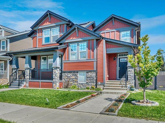 Amazing layout! Fall in love with your new home in the vibrant, family oriented community of Evanston. This unique side by side home offers modern stylish finishes and a super functional layout on a prime corner lot. Striking red siding, contemporary architecture, well maintained landscaping and the coolest weather resistant fence made from bamboo make this property stand out from the crowd. You’ll feel at home right away as you step into the bright and sunny living space with its soaring vaulted ceilings and spacious open concept layout with tons of windows. You’ll love the well planned kitchen with popular white cabinetry, gleaming stainless steel appliances, quartz counters and a centre island with seating for friends and family to gather. A cute little coffee or appliance station leads to your oversized pantry / storage room. The kitchen is also open to the dining area and a back door leads to your deck for easy access for grilling and outdoor dining. 2 more closets on this level provide ample storage for outer wear and other items. The second level of this home has one bedroom plus a full bath creating a perfect private space for a child or teen’s room, guest room or maybe a home office. The spacious owner’s retreat is on the top level. The 5 pc ensuite includes his and hers sinks, a good sized soaker tub and a separate shower plus there is a generous walk in closet. You’ll love the convenience of upstairs laundry and the vaulted open hallway takes advantage of the many windows on the main level creating a bright and open feel. You can expand your living space as needed in the clean, dry and unspoiled basement. Big windows give you the opportunity to add additional bedrooms if desired. The backyard has a nice deck and plenty of grassy area for kids and pets to play plus there is room to add a garage with back alley access. You are going to love living in Evanston. This modern suburban community offers an abundance of green spaces, great local schools and access to all urban amenities and major roadways. Don’t miss your chance to call this one home.