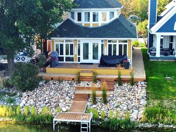 Completely reimagined from the studs up, this stunning home offers the very best of modern design blended seamlessly with the lifestyle of lakefront living. Step inside to an open-concept layout where natural light pours through expansive windows, highlighting sleek finishes and thoughtful updates throughout. The heart of the home flows effortlessly into a spectacular 4-season sunroom with walls of glass, creating an inviting retreat that captures breathtaking lake views year-round. Step out to your back deck and soak in the tranquility of waterfront living. An attached garage adds convenience, while the home’s fresh redesign ensures every detail is ready for you to move in and enjoy. Beyond your door, the community is unmatched—residents enjoy exclusive access to a clubhouse, private boat launch, boat slips, and tennis/pickleball courts. With an 18-hole golf course just across the street and shopping, dining, and vibrant downtown amenities only a short walk away, every day feels like a vacation. This is more than a home—it’s a lifestyle. From sunrise coffees by the water to evenings entertaining friends, you’ll find yourself embracing the charm, leisure, and luxury that only true lake life can offer. Don’t miss this rare opportunity to own a fully updated lakefront retreat. New furnace, A/C, water softener, hot water on demand, fireplace - this beauty has had a major face lift.