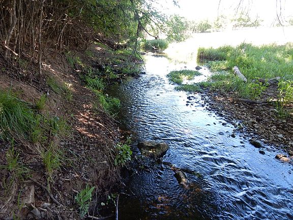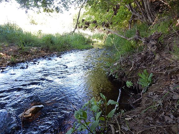 Creek meanders edge of property. House has welcoming front porch. Decorative front door opens into the living room with hardwood floors throughout except pine floors in bathroom and concrete floor on back closed in porch. Spacious kitchen with country dining area. Two closets in master bdrm. 3 car carport. 1 car unattached garage, porch & attached built-in antique wash stand in wash house with trap door leading into root or storm cellar. Numerous outbuildings. Backyard has built-in barbeque pit. Great area for growing your own garden. Shade trees in backyard.