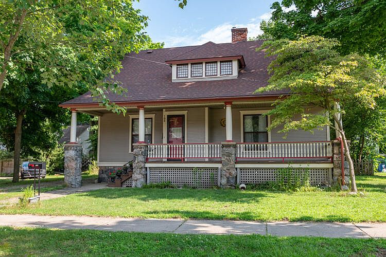 OPEN HOUSE SUN 9/15 12:00-2:00 Fantastic opportunity to own this charming historic 1905 Prairie Style Bungalow! Tastefully remodeled & lovingly maintained. Exquisite stone pillars topped with Egyptian columns flank the front porch. The sunroom in the back overlooks the spacious fenced back yard, a gardener's delight. Main floor ensuite. Huge walk-in closets. The large, sunny kitchen has a pantry and high ceilings. Original fireplace & unpainted woodwork still grace the interior, & skilled craftsmanship is evident in the original wood floors. One of the most elegant of its age in town. Full basement w 9' ceilings, 2 driveways, newer appliances, & many updates. Quiet neighborhood near downtown. 1 YR HOME WARRANTY INCLUDED