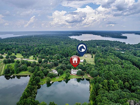 LAKE OCONEE EQUESTRIAN ESTATE - Magnificent 12+ acre estate home in the gated community of Waters Edge. 4 board fenced, 4-acre stocked pond, 7-stall barn, and miles of horse trails through the community, and a community boat ramp on Lake Oconee make this the ultimate equestrian property. Five-bedroom home constructed by the area's premier builder with high-end finishes and features. Great room with a cathedral ceiling and stone fireplace, hardwood flooring, a gourmet kitchen with granite countertops and high-end appliances, a master suite on the main level with deck access, and a luxurious bath. Two large bedroom suites upstairs. Finished walk-out terrace level with family room, wet bar, and 2 additional bedrooms. Detached 3-car garage with finished bonus area above. A gorgeous property and setting that would be impossible to replicate at this great price!