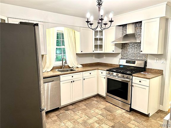 You will fall in Love with this 2 Bedroom - Cape Cod House with over quarter acre of land. The kitchen was recently updated with new flooring, counter tops, cabinets and appliances. The living room is very spacious with beautiful hardwood floors and gas fireplace. Presently, the first floor bedroom closet has stackable washer and dryer - which can easily be moved to the basement. The second bedroom has great size closet with sliding glass door that leads out to the back deck and very private large backyard. You will love the built-ins in the hallway of the house. The first floor bathroom has full bath tub and newer flooring, vanity. The backyard features fully insulated shed with laminate flooring - easily can be heated and can be used for office, work out room - so many possibilities. The backyard is very private - gives you the feeling of being in the country. Off the back deck is brick patio that would be great for summer fires. Don't forget the one car garage with plenty of room for additional storage and garage door opener. Major updates include architectural roof, vinyl windows, 2ft insulation in attic, foam around basement sill just to name few. Don't miss this one