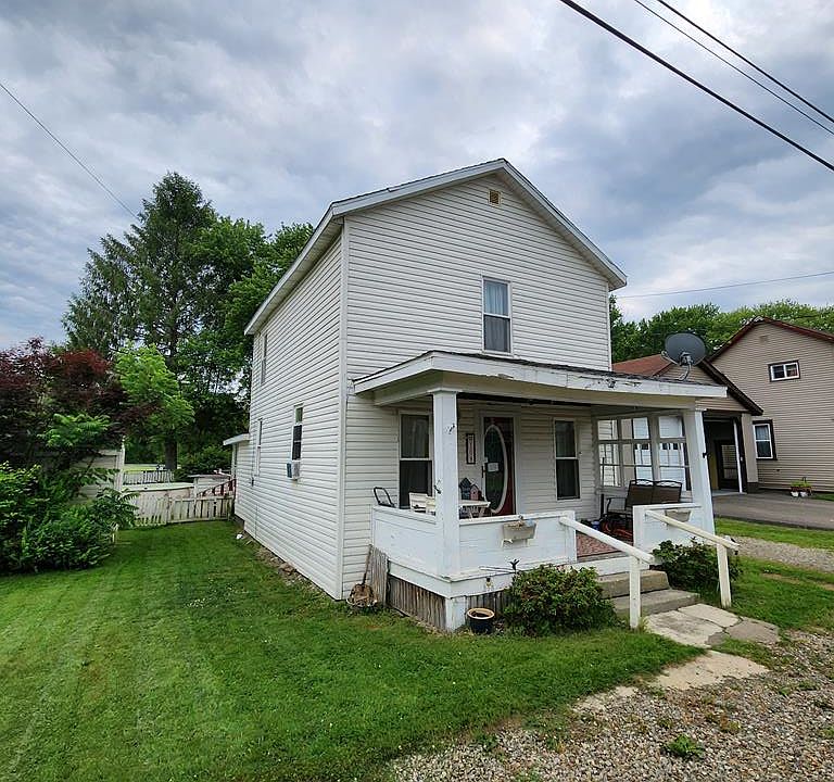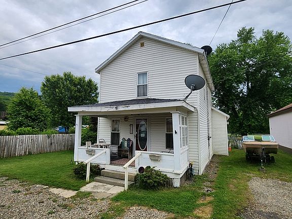This 2 bedroom, 2 bath sits in downtown Tionesta and just 3 houses away from the Allegheny River. The back door opens to a large deck into the back yard which borders the Borough Park. Downstairs consist of a living room which opens into a dining room; however, the kitchen also offers room for sit in dining. A bathroom and the laundry room are also located on the first floor. Upstairs consist of two bedrooms with a shared bath. The exterior, roof and first floor were updated in 2004 with the upstairs needing a little more TLC. Heating is provided with electric baseboards and supplemented with a natural gas fireplace as needed. All major appliances are included with the sale. A shed is also located on the property.