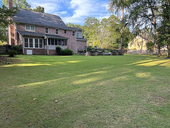 Beautiful 4 bedroom, 2.5 bath house in Wesleyan Woods neighborhood. Two car garage. Two separate staircases to upper level. Large 1.68 acre lot with private fenced back yard, creek and wooded area. 750 sq foot patio with power panel professionally wired for a hot tub. Updated windows. Hardwood floors throughout main level. Kitchen/breakfast area open to den with 9 foot ceilings.