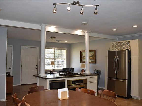 This brick on slab three bedroom home has two living areas and kitchen all open, wood burning fireplace, three bedrooms, full hall bath with updated tub and tile, and half bath in main bedroom. Vinyl or tile flooring throughout. One car covered carport. Stainless French door refrigerator and washer/dryer included.