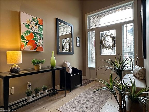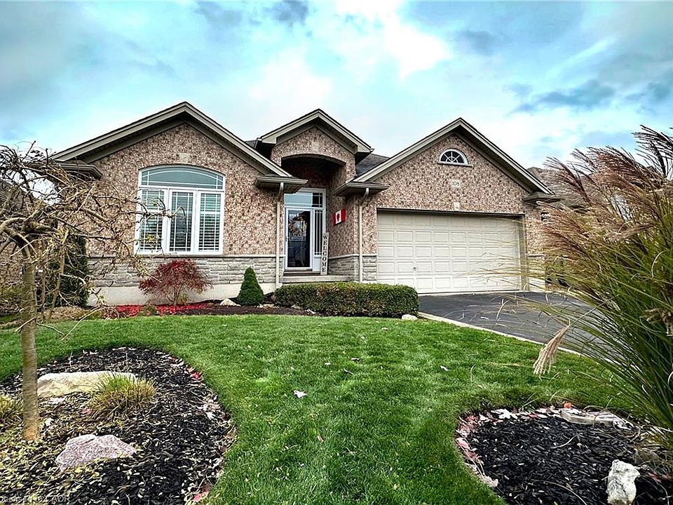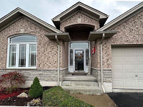 Welcome to this charming three-bedroom, two-bathroom stone and brick bungalow nestled in a tranquil Port Dover neighborhood. A covered entrance leads to an impressive foyer featuring 12' ceiling, and entry door with sidelights and transom window. The spacious living room features stunning hardwood flooring, a cozy gas fireplace, California shutters, and an 11' vaulted ceiling that enhances the open and airy feel. The inviting kitchen is equipped with a breakfast bar, ample cabinetry, pantry, tumbled marble backsplash, stainless appliances and a lazy Susan for added convenience. Retreat to the primary bedroom boasting new carpet, a spacious walk-in closet, and a luxurious four-piece ensuite bath with both a separate shower and soaking tub. Step outside to enjoy the private fenced yard complete with a stamped concrete patio, garden shed, and a gazebo—perfect for outdoor relaxation. Additional highlights include main floor laundry with a sink and an attached double garage for ample storage. Great end of the street location with a 5 minute walk to the Lynn Valley trail for cycling and walking and a 5 minute drive to Port Dover's vibrant downtown for shopping, restaurants, theatre and beach.