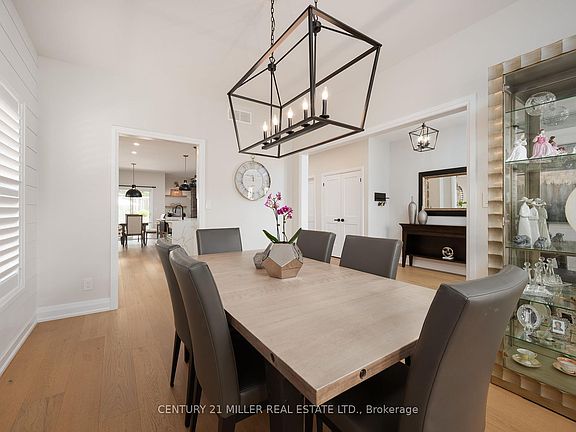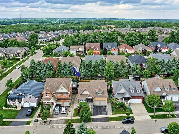 Welcome to 3656 sq ft of refined living space in Rockwoods coveted Upper Ridge neighbourhood. This fully renovated and redesigned 2+2 bedroom, 3-bath bungalow is a masterclass in transitional elegance. Set on beautifully landscaped lot with natural stone accents and mixed perennial gardens, the home makes an immediate impression with its grand front portico + commanding curb appeal. Inside, white oak flooring, custom millwork+ warm marbled stone details carry throughout a bright, flowing layout that seamlessly connects the main living areas. At the heart of the home is a chefs kitchen with an oversized island, high-end finishes + direct access to a generous rear patioideal for entertaining. The adjacent family room, anchored by a floor-to-ceiling stone fireplace, offers the perfect spot to gather. A stylish mudroom with laundry and interior garage access adds to everyday convenience. The private primary suite is a serene retreat with a sitting area, custom walk-in + spa-like ensuite. A second bedroom enjoys exclusive use of a beautifully appointed main bath. The fully finished lower level extends the living space w/a well-equipped wet bar, games area + a cozy rec room with a stone-clad fireplace.Two additional bedrooms, a luxe full bath with air-jetted soaker tub, second laundry room + flex space complete the lower level. Out back, an expansive stone patio spans the width of the home, framed by beautiful low-maintenance landscapingperfect for summer gatherings or quiet evenings outdoors. A seamless blend of sophistication + comfort, this home is ideal for right-sizers and families seeking elevated single-floor living in the heart of Rockwood. Short drive to Guelph + local highways.