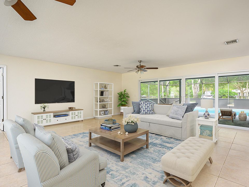 Gorgeous pool home that's perfect for the whole family! Split floor plan home has an in-law suite with separate entrance & washer/dryer hookup. LOTS of storage! Kitchen has been remodeled w granite countertops, maple cabinets, & stainless steel appliances. Bathrooms remodeled. Open concept home, perfect for entertaining. Double sliders open up looking out over your private screened pool & large fenced backyard. On your half acre lot you will find many fruit trees including lemon, grapefruit, orange, loquat, banana, & avocado! Impact windows & doors. No HOA! Room sizes approx/subject to error.