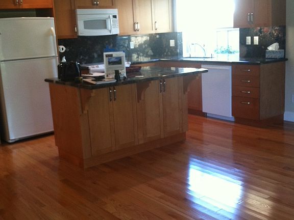 Home includes a refrigerator, electric stove, microwave hood vent, dishwasher