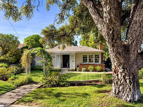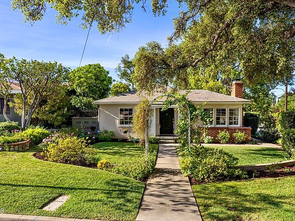 This beautiful and inviting two bedroom, one bath home occupies a 7189 sqft, very private corner lot. The front yard is canopied by a beautiful Cork oak tree providing lovely shade on sunny days. Walk into the bright and cheery living room with a cozy fireplace and unique under-window storage cabinets. You'll enjoy your time in the dining room adorned with quaint built-in glass cabinetry. Adjacent to the dining area, a well-lit bonus room is used as an office. The hardwood floors connect throughout the home. The kitchen has been updated with recessed lighting, new appliances, countertops, and a farmhouse sink, and it has a wonderful view of the backyard. The front bedroom is bright and airy. The spacious back bedroom overlooks the well-manicured backyard, and includes a walk-in closet and access to a hidden, finished California basement. The backyard has a lovely concrete patio with a pergola next to a water fountain. A second water feature accompanies a relaxing sitting area. This property is complete with a private driveway and a detached two-car garage with ample storage and a workbench. An Altadena gem awaits.