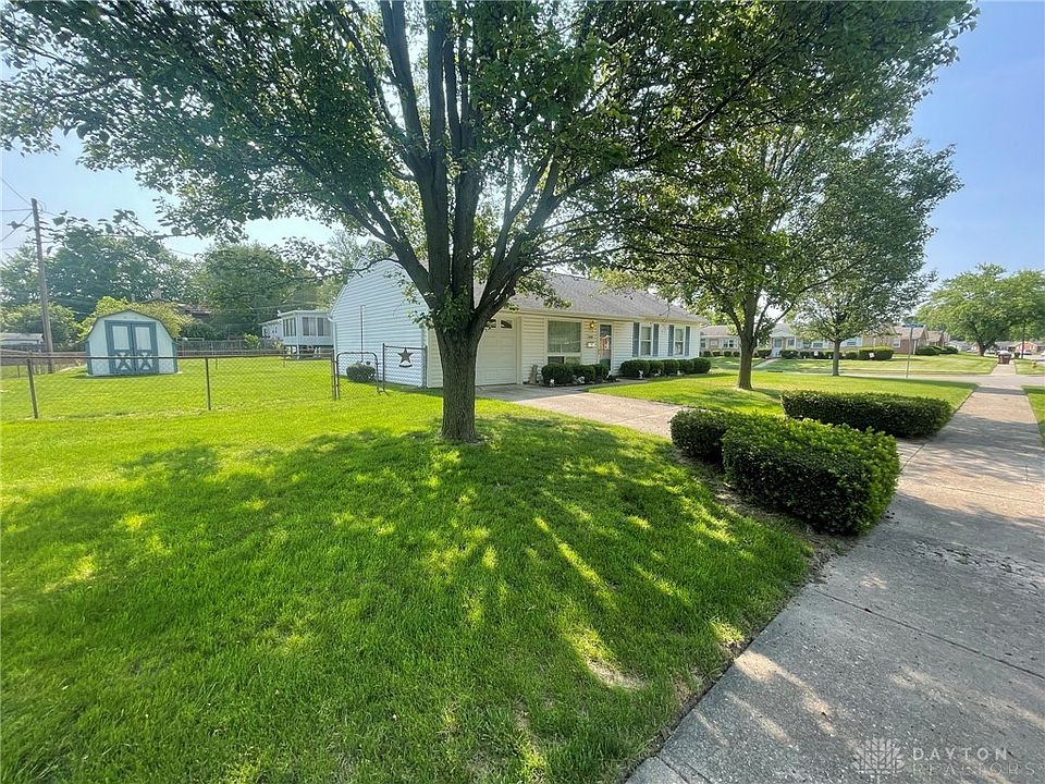Long time, well cared for, family ranch on a beautiful corner lot. The yard is well manicured, has a fenced back yard, large covered rear patio and storage shed. This small but mighty house offers everything you need in a home! Updated steel entry doors, storm doors, vinyl replacement windows, large walk-in pantry area, and washer/dryer remain. Eat-in kitchen where refrigerator, range and microwave. 3 bedrooms and 1 full bath. Oversized 1 car garage with opener (tool boxes and work bench do not stay). Updated roof. The home is being sold to settle an estate. The Executors intention are to sell as is. Conventional or cash Buyers only. Use Showing Time for immediate confirmation.