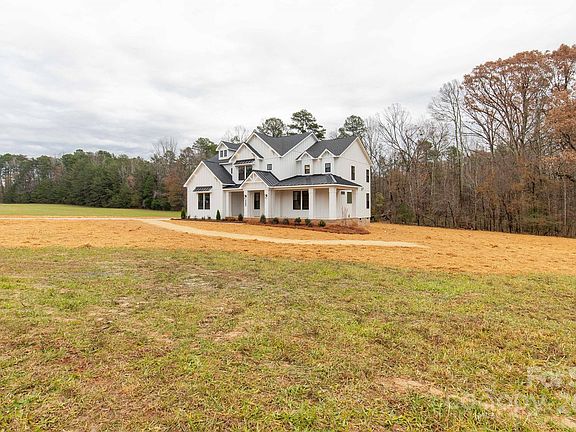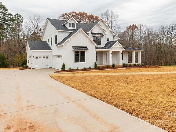 This stunning modern farmhouse is nestled on a gorgeous 5+ acre tract in Clover, SC, and is just waiting to welcome you HOME. As you pull up into the driveway you'll be in awe by the curb appeal of the white exterior, black accents, and wrap-around front porch. The home offers a 2 car garage and an additional single-car carriage garage for that extra storage. Inside you will find carefully curated selections from top-of-the-line Z-line gas range, Moen plumbing fixtures, & matching hardware throughout. The great room will feature a coffered ceiling and a custom focal point fireplace. Boasting a primary suite on the main level, and a second primary suite on the 2nd floor, both with luxury en-suite baths. There are also 3 additional bedrooms, 2 additional full baths, and a bonus room upstairs. For a touch of extra convenience, there are 2 laundry rooms, one on the main level & 2nd floor. Up to 2 Horses and/or cows are allowed.