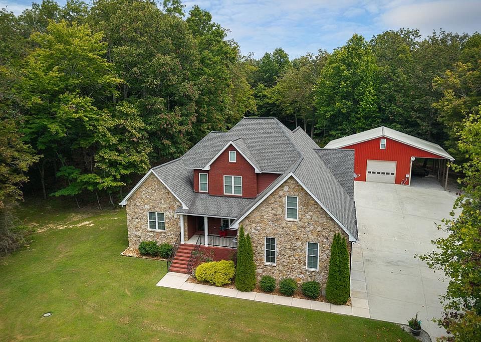 A long concrete drive leads to this timeless 4 bedroom 4 bath home situated on a private 5-acre tract in a highly sought-after neighborhood. Freshly painted throughout with detailed trim work. Spacious living room with coffered ceilings, formal dining room, and four-seasons room overlooking the private backyard. Kitchen features include pocket doors that open for entertainment or shut noise out. All appliances include a brand new stainless refrigerator, gas range and built-in oven, center island, large eat-in area, coffee bar, and a hidden door providing direct grocery access from the garage. Main-level offers 2 bedrooms including primary suite offers double vanities, large tiled shower, and walk-in closet with built-ins. Upstairs includes two additional bedrooms, full bath, and a large walk-in attic. Exterior features include a 38x40 detached shop with RV shed and a 750 sq ft apartment. Washer and Dryer in both home and garage stay. Attached 2 car garage has a built in storm shelter.