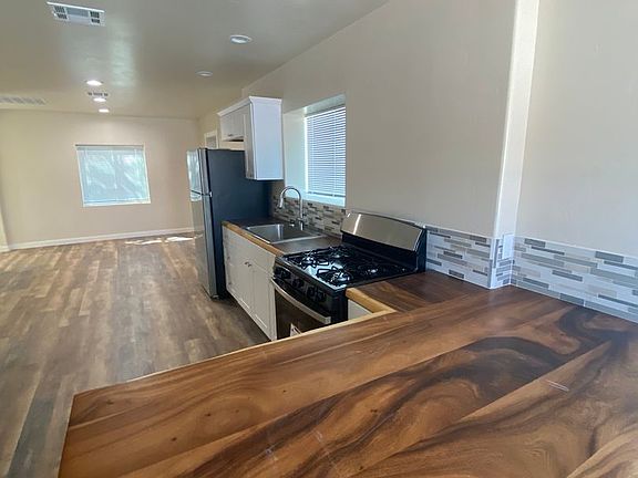 Welcome to this Gorgeous 2 Bedroom/1 Bathroom Home. This beautifully remodeled home is a perfect blend of modern amenities and classic charm. The home features two spacious bedrooms and a full bathroom, offering ample space for comfort and relaxation. The kitchen is equipped with top-of-the-line stainless steel appliances, beautiful countertops ready to inspire your culinary adventures. The home also boasts refrigerated air, ensuring a cool and comfortable environment all year round. The hard flooring throughout the home adds a touch of elegance and is easy to maintain. The private driveway provides convenient off-street parking. This home is a perfect blend of style, comfort, and convenience, waiting for you to make it your own.
