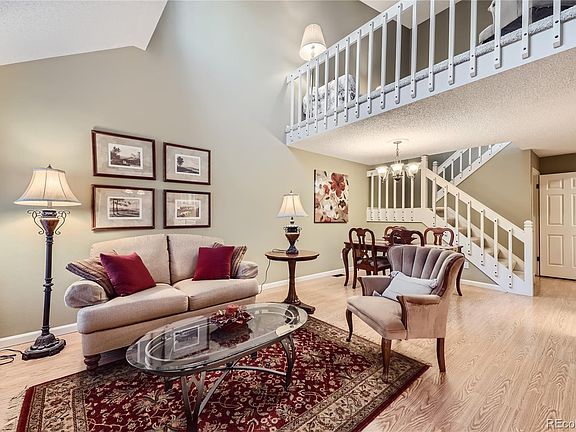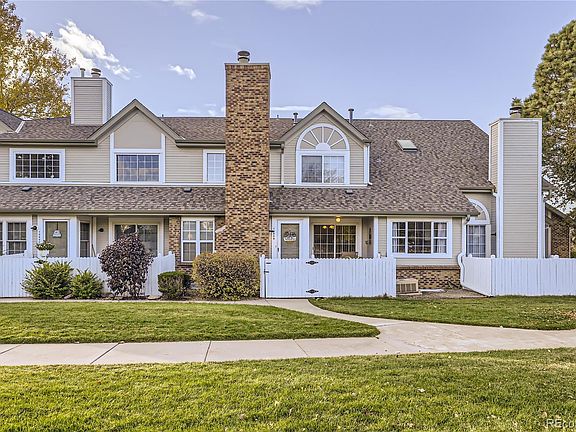 Wonderful townhome in Hunters Glen. Bright, open floor plan with vaulted ceilings, just steps away from the lake. Sunny interior with 2 story great room and cozy fireplace. 3 bedrooms plus a sunny loft complete with sky light. Lovely primary bedroom with vaulted ceilings. Beautifully remodeled primary bathroom with walk-in shower and upgraded tile. Open loft overlooks the great room. Finished basement with 2nd family room and office. Great curb appeal with an inviting front porch complete with a picket fence and garden boxes. This charming low maintenance home has been well taken care of. Great location with easy access to I-25, shopping, restaurants and convenient access to the light rail and to Denver.