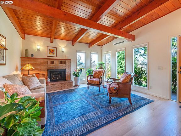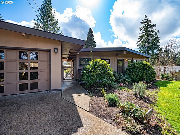 Charming single-level mid-century style home offers original classic features with modern upgrades. New red oak flooring with classic open beam ceilings create a warm and inviting atmosphere. The abundance of windows, complemented by a skylight and light tubes, floods the space with natural light. Adjacent to the dining room, there is a covered patio overlooking the inviting backyard. Tucked away at the back of the lot is a studio cabin that provides a peaceful getaway space. The nearly half-acre lot with thoughtful landscaping provides privacy and a park-like setting that includes raised beds, gracious trees, and views of Spencer's Butte. There are seven zones of drip irrigation installed throughout the front and back yards. Set in the desirable East Amazon neighborhood, East 36th Avenue is a quiet street with extensive walking and bike trails nearby that provide easy access to parks, restaurants and shopping. This home is a true gem—don’t miss the opportunity!