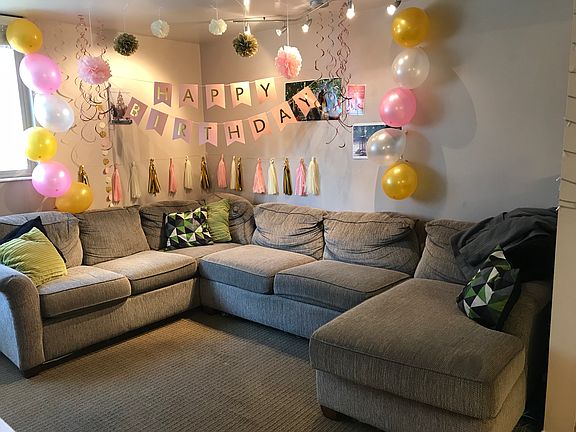 BYU approved condo clean and nicely updated three bedroom two bath condominium; second floor; Large Kitchen with new tile floors; all major kitchen appliances stay; new dishwasher, newer range and refrigerator; large pantry; Living room has sectional couch that stay; Bedrooms have beds, dressers, and desks that stay. Condo has newer central A/C. Condo is zoned for 6 women. Internet is through Google Fiber. Washer and Dryer on site in basement of the building. HOA includes internet, cable, garbage, and gas. 6 tenants split electricity and pay separate from rent. There are currently 6 women's contracts in place through April.