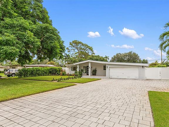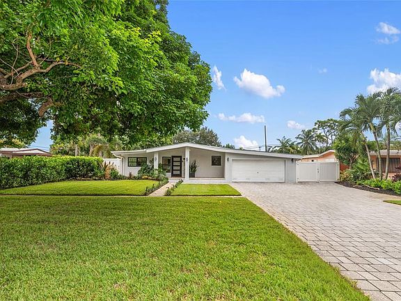 Stunning 4-bed, 3-bath home in the Country Club Estates neighborhood that sits on 1/4-acre lot, with direct view of the Fort Lauderdale Country Club Golf Course. The current owners have meticulously updated every detail, ensuring a move-in ready experience. Between 2022 and 2025, the owners remodeled kitchen cabinets, quartz countertops, new appliances, LVP flooring, baseboards, interior doors, trim, paint, a custom-built bar with marble countertops and a dedicated wine fridge. The pool was resurfaced in 2025. 2-car garage features a durable epoxy floor, and the home also includes impact front door and windows (2021), a new roof (2021), and an updated electric panel (2021) and HVAC (2019). Don’t miss the chance to own this slice of paradise in Country Club Estates.