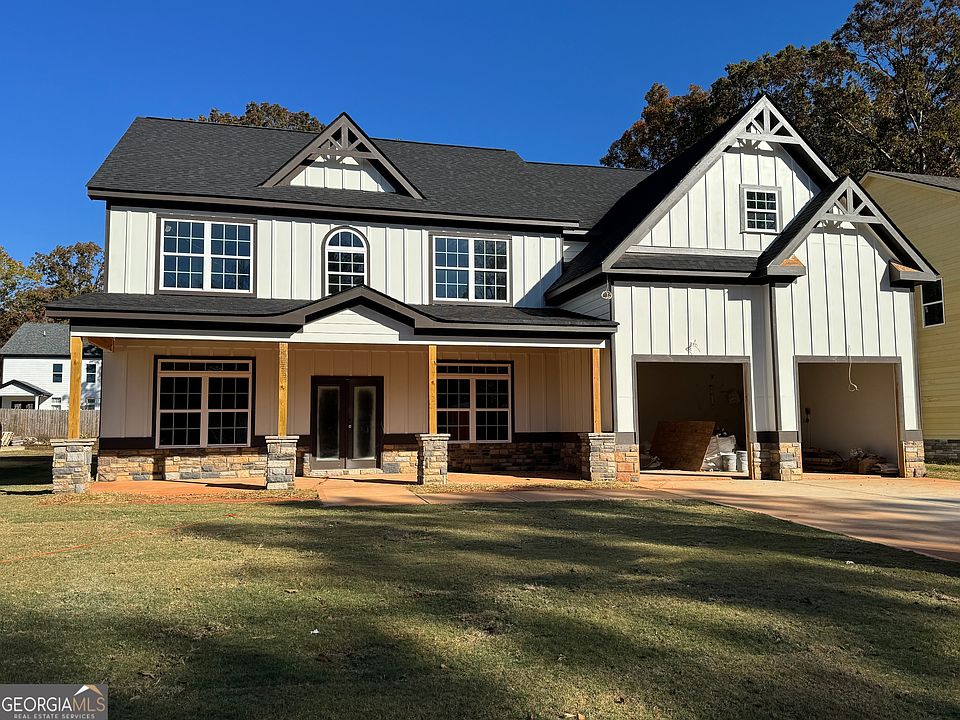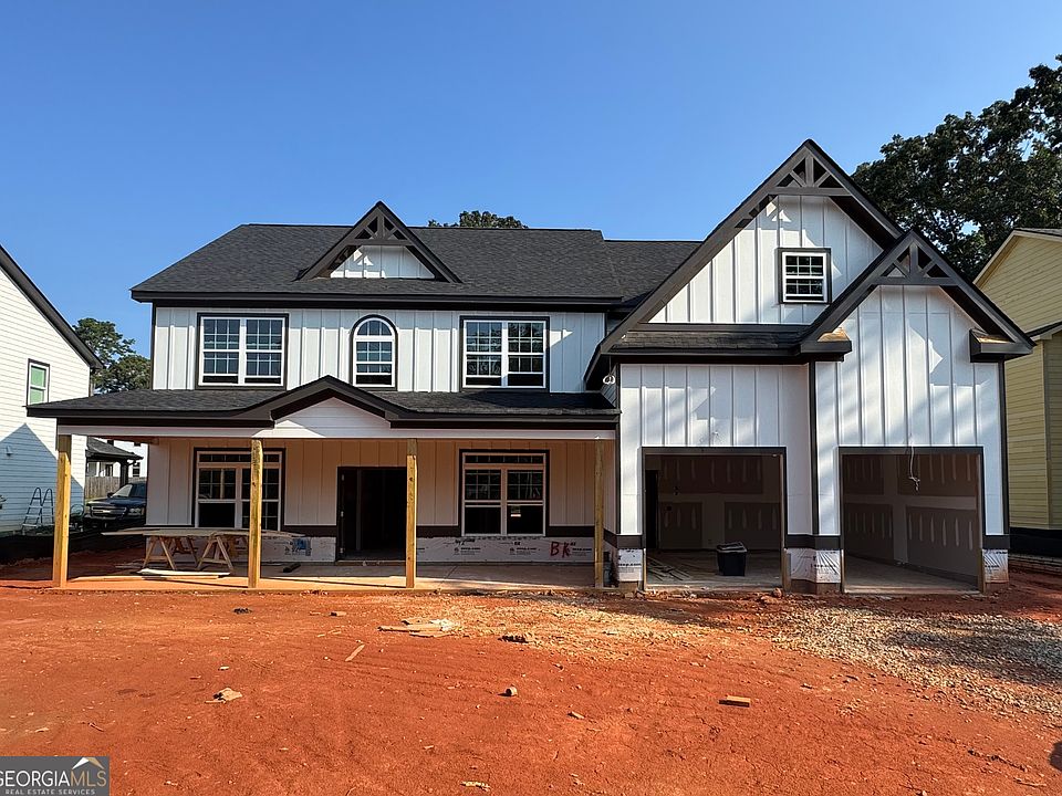 Welcome to this beautiful new construction two-story Craftsman-style home, thoughtfully designed with both comfort and functionality in mind. Featuring 5 spacious bedrooms and 4 full bathrooms, including a private guest suite on the main level, this home offers plenty of room for family and guests. Enjoy multiple living spaces with a separate dining room, formal living room, and a cozy family room on the main floor-perfect for everyday living and entertaining. A dedicated theater room on the second floor provides the ideal space for movie nights or relaxing weekends. Step outside to unwind on the covered back porch with privacy fence in backyard or the inviting rocking chair front porch. Located just minutes from shopping, dining, and everyday conveniences, this home offers the perfect blend of style, space, and location.