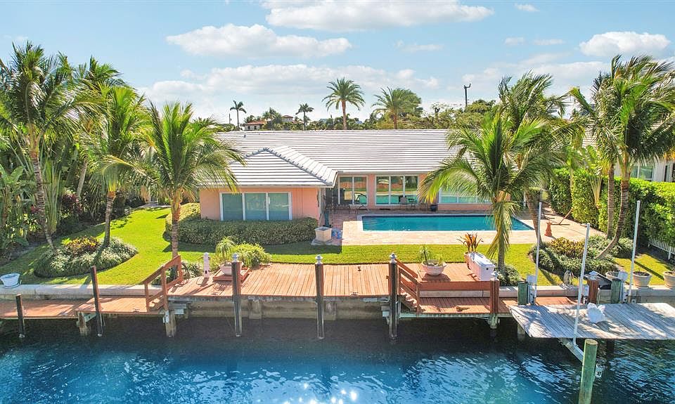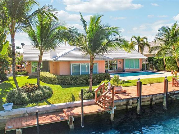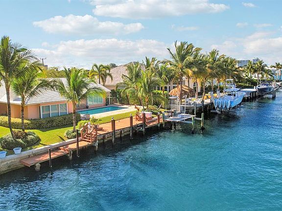 This is the rental property you have always dreamed of! Spend your days lounging at the pool or relaxing on the dock with enough room for a LARGE sportfishing boat to be parked in your own back yard, minutes away from the Palm Beach Inlet, with NO fixed bridges! The dock is equipped with access to power and fresh water. With a short walk to the beach, you can also enjoy the bright blue waters of the ocean. The living area includes a fireplace, custom bar with a beautiful sunroom to sit and enjoy the view. This property is available for annual or seasonal rental with the furniture.