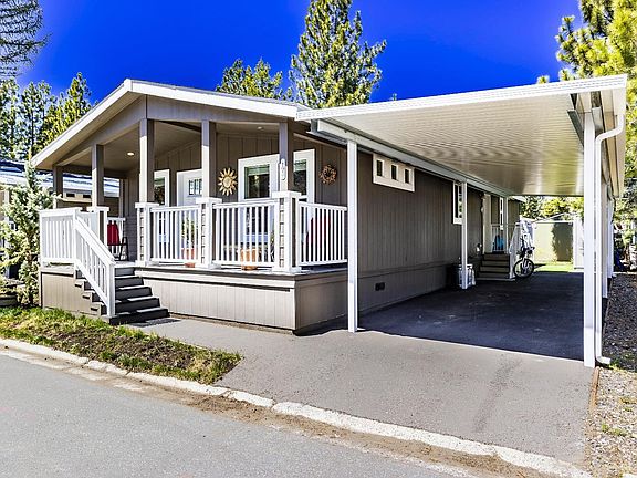 Beautiful well cared for and only a few years old,sun drenched 2 bedroom 2 bath manufactured home located in the city of South Lake Tahoe. The inviting covered front porch welcomes you into this 1200 square foot home. Vaulted ceilings and open concept kitchen, dining room and living room. Spacious kithen with stainless steel appliances with a big center island with tons of cabinets. Laminate and carpet flooring. Ceiling fans in the living room and bedrooms. Primary bedroom with a walk in closet. Primary bathroom has double sinks with an oversized shower and lots of storage. Separate laundry room, washer and dryer included. Shed for all of your seasonal items. Some of the parks amenities include snow removal, pool, sauna, park and clubhouse. Close to Lake Tahoe, hiking, biking, restaurants, shopping, and world class skiing. Space rent is $820 a month plus utilities.