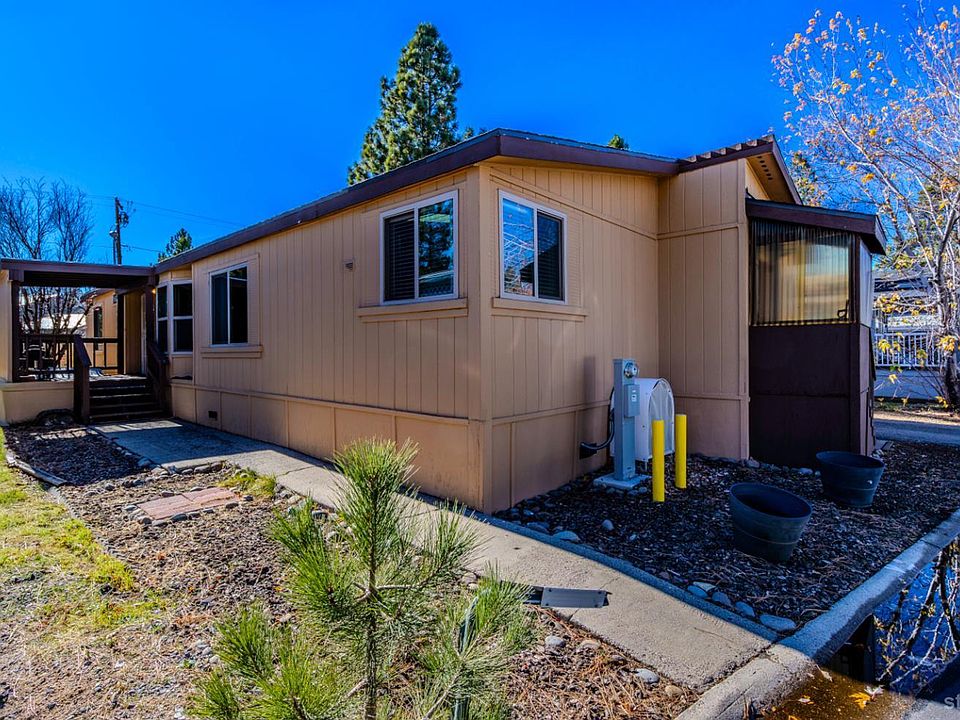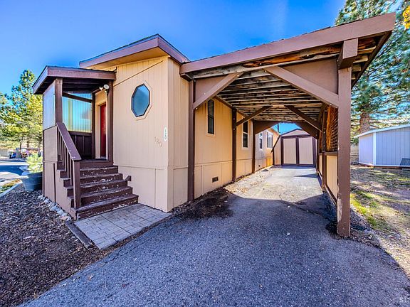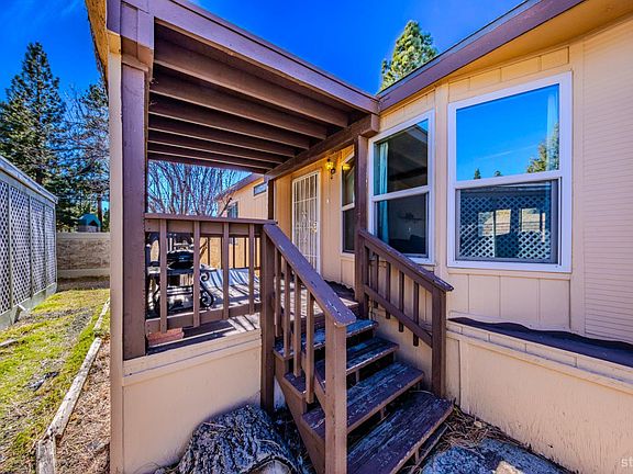 Located in the city of South Lake Tahoe! One of the largest manufactured homes in Tahoe Verde Estates boasting 1680 square feet. Excellent park location with no neighbors behind you. Bright sun filled eat in kitchen with a skylight. Spacious open dining room/living room. 3 bedrooms and 2 bathrooms. New laminate floors and vinyl windows. Separate laundry room. Covered front porch. Big storage shed. 2 car tandem parking with carport. Space rent is $820 a month plus utilities. Pool, saunas and clubhouse are just a few of the amenities. Close to the lake, hiking and bike trails, shopping, restaurants, world class ski resorts and casinos.