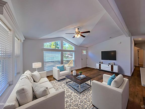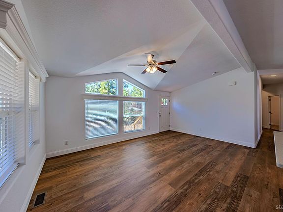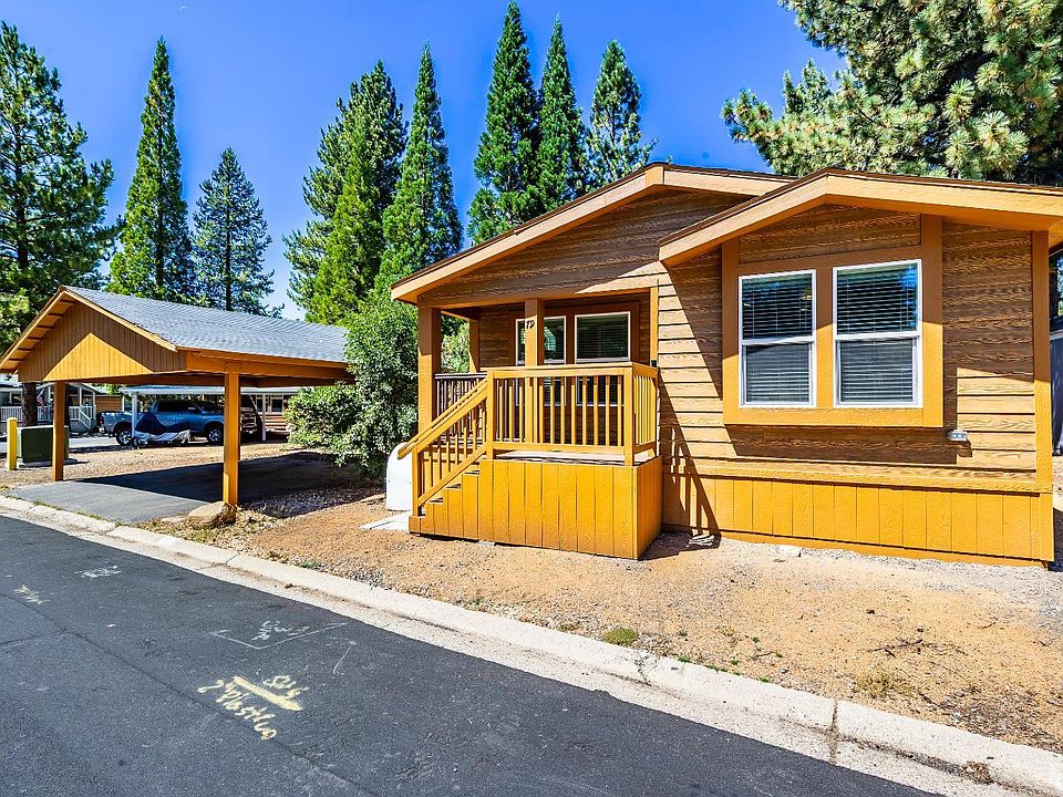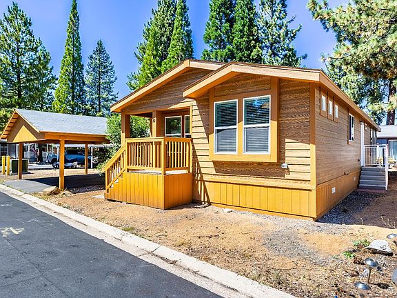 Brand new 3 bedroom 2 bath manufactured home located in the city of South Lake Tahoe. One of the largest homes and lots in Tahoe Verde Estates. Minutes away from Lake Tahoe, premier ski resorts, dining, shops, and outdoor recreation. Gated community entrance. Inviting covered front porch. Vaulted ceilings with oversized windows. Open concept kitchen, living room and dining room. Stainless Steel appliances and a big center Island. Quartz countertops. Recessed lights. Laminate and carpet flooring. Ceiling fans in the living room and bedrooms. Primary bathroom has 2 sinks and a large shower. Primary bedroom has a walk in closet. Separate laundry room. Big shed to keep all your seasonal items in. Space rent is $820 a month plus utilities. Some of the parks amenities include, pool, sauna, park, clubhouse, additional guest parking. Excellent in town location close to all Tahoe has to offer!This unit features a virtual staging effect.